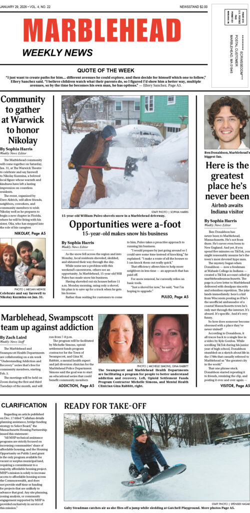Friday, Jan. 30 9:00 AM – Headliner – The News of Marblehead 9:30 AM –…