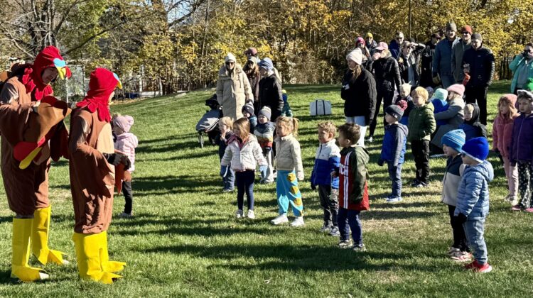 The Marblehead Moms Co-op group held its annual Turkey Trot for kids last Saturday at Bud Orne playground. About three dozen toddlers chased after larger-than-life turkeys and helped raise more than $1,250 for the Marblehead Food Bank, enough to provide Thanksgiving dinner for 15 local families.